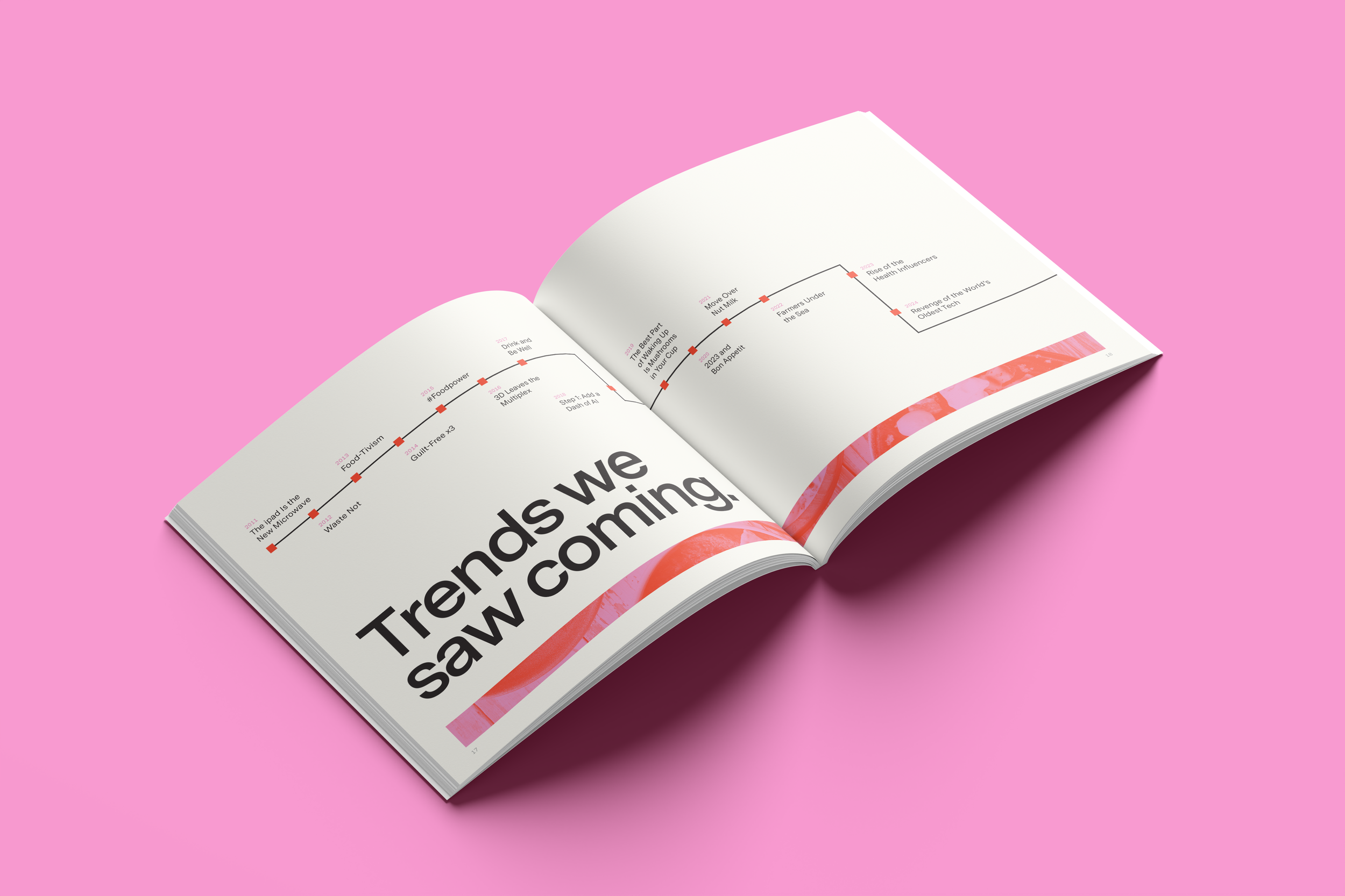 The flip book served as a strategic teaser for the Food Trends Report. It presented the perfect opportunity to experiment with AI-generated content and explore how emerging tools could be meaningfully integrated into my design-driven workflow without compromising craft or editorial intent.