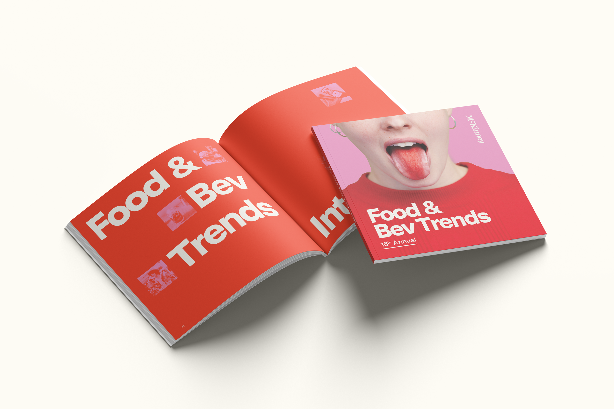 The 16th Annual Food Trends Report challenged me to create a cohesive visual system that worked across print, digital, and social while exploring AI-generated content. The system was built on vibrant colors, clean Swiss-inspired layouts, and provocative photography treated with a punchy red-and-pink duotone. The goal was to amplify culture-cutting trends with visuals that demanded attention while maintaining editorial clarity across every touchpoint.