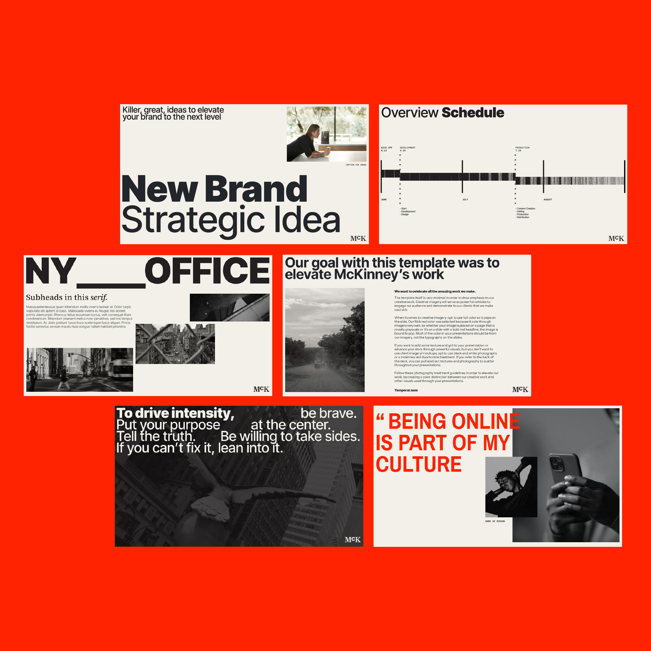 Following McKinney’s 2025 rebrand, I developed a comprehensive deck design system that brought their refreshed identity to life. The 400+ presentation template enhances how the agency presents it’s ideas, capabilities, & creative work.