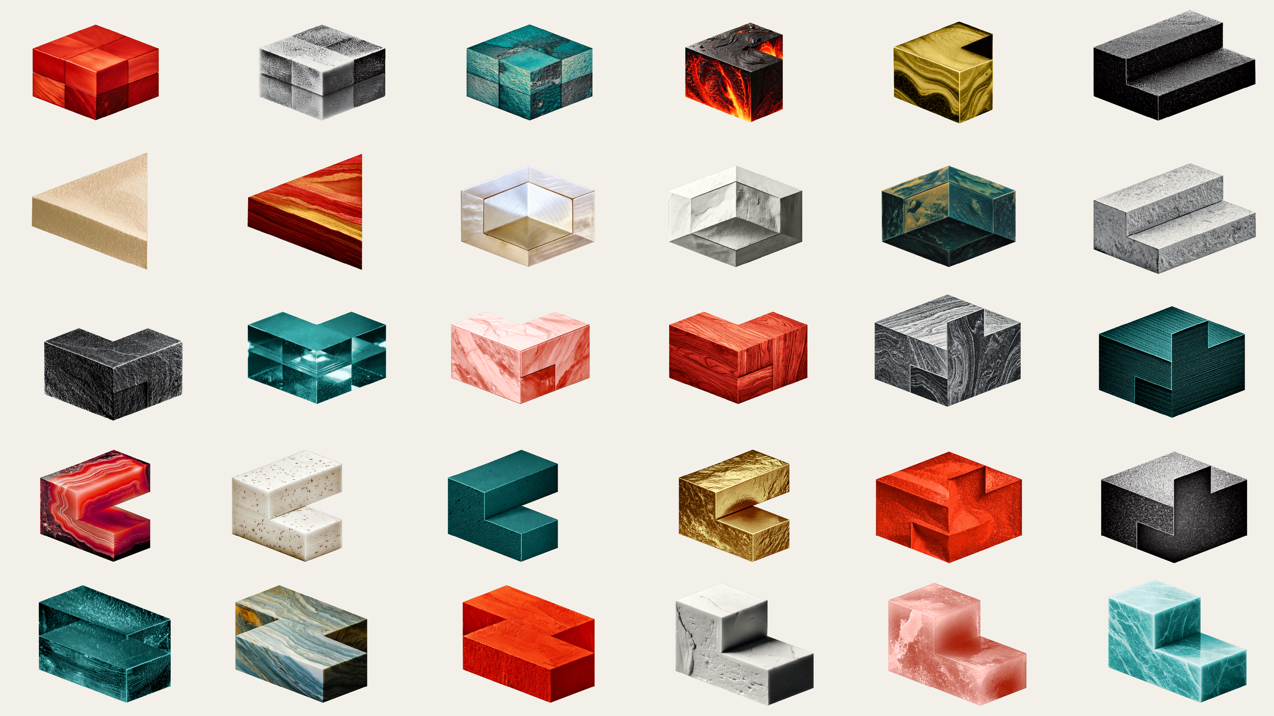 To enhance McKinney’s presentation template, I designed a custom set of 30 icons built on the same isometric grid as the new McKinney logo, anchored by precise 20-degree diagonal lines. Each icon was wrapped with AI-generated textures inspired by patterns found in nature & recolored to match McKinney’s new color palette. This approach allowed the icons to feel both vibrant and organic, reflecting McKinney’s mission to help their clients refuse to be ignored.