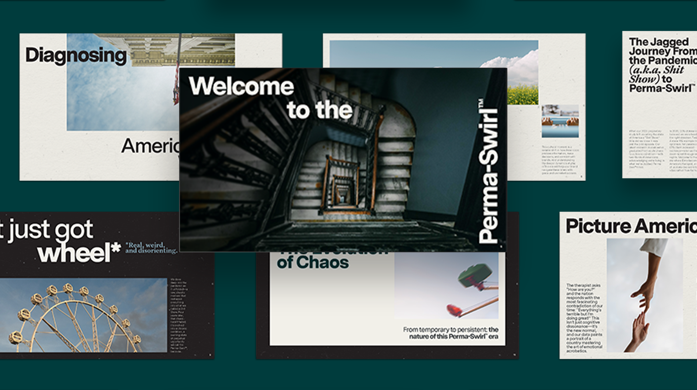 McKinney needed a fresh editorial look that advanced their new brand and echoed the report’s theme: perpetual vertigo