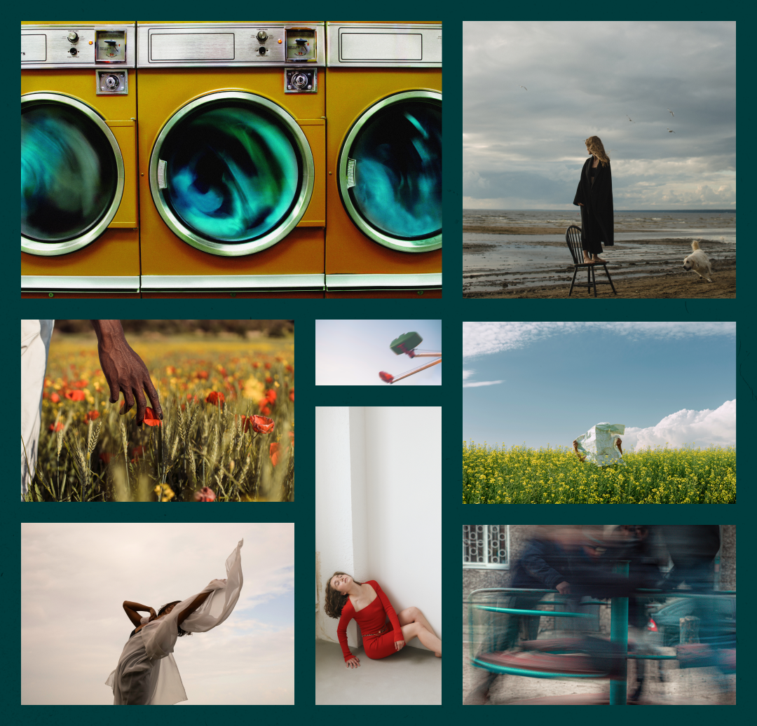 The curated photography is intentionally disorienting with wide expanses, blurred motion and unsettling perspectives. The imagery stirs up the sense of being lost and mirrors the tension within the report.